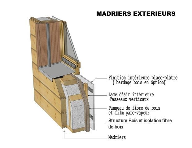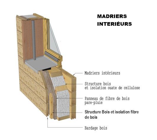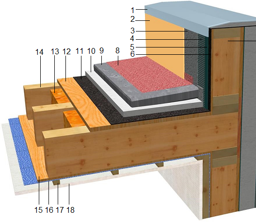 7- Acrotère: prolongement du mur de façade en ossature bois.