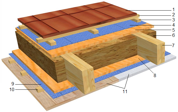 2- Profils bois (et couverture tuiles) 25 x 45 mm section.